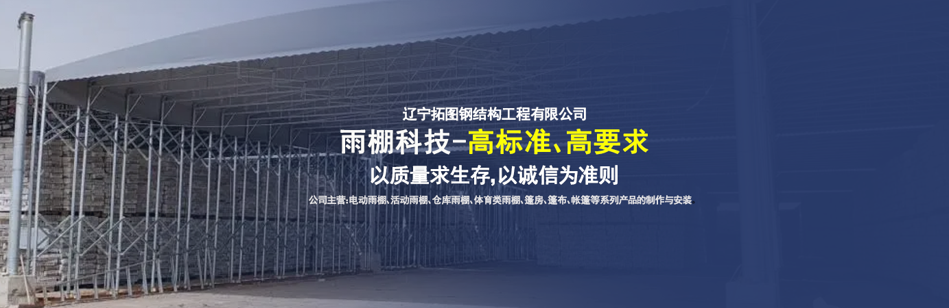 遼寧拓圖鋼結構工程有限公司是一家專業從事推拉篷設計、制作、安裝、使用、維修的綜合性公司。公司主營:電動雨棚、活動雨棚、倉庫雨棚、體育類雨棚、篷房、篷布、帳篷等系列產品的制作與安裝。    遼寧拓圖鋼結構工程有限公司堅持以市場為導向,以科技創新為動力,以質量求生存,以誠信為準則,倡導求實、進取、創新的企業精神。“科學的管理、嚴謹的設計、 的制作安裝、嚴格的質量檢測、良好的后期服務成就企業的信譽,為您提供優質服務。    遼寧拓圖鋼結構工程有限公司傾力于開發應用三維空間結構與新材料的結合,將廣告藝術視覺表現形式與張力膜材科學的結合,推出多彩推拉蓬,依靠先進的科學技術,將推拉蓬建筑表現形式無限延伸,立志走在建筑科學的前沿,引導建筑時尚潮流,我們的目標是使推拉蓬建筑在中國發展壯大。    遼寧拓圖鋼結構工程有限公司憑著極強的事業熱情和豐富的專業經驗以“勤勉進取、銳意創新、至誠至信”的精神使公司得到迅速健康發展,業務范圍遍及全國。科學的管理、嚴謹的設計、高標準的制作安裝流程,嚴格把控產品質量,熱誠的售后服務是企業競爭力的源泉。    遼寧拓圖鋼結構工程有限公司人愿以最誠摯的態度,歡迎廣大客戶的蒞臨與溝通!愿為市場提供優...